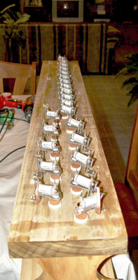 We have recently added facilities to custom fabricate small metal parts for organ actions, keyboards and blowers. Shown above is our metal lathe. We have also acquired brakes and shears for cutting and shaping metal for pipe repairs and tuning sliders. |