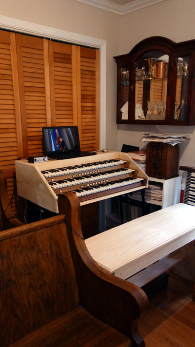 A thirty-pound portativ organ that can be played from a laptop computer, or with the assistance of any toy or professional MIDI keyboard or console |